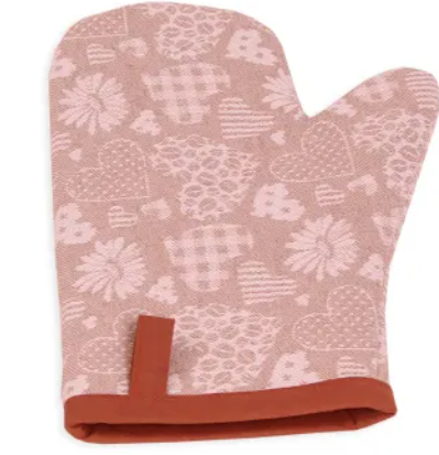 Kuchyňská žakárská chňapka s motivem srdíček.