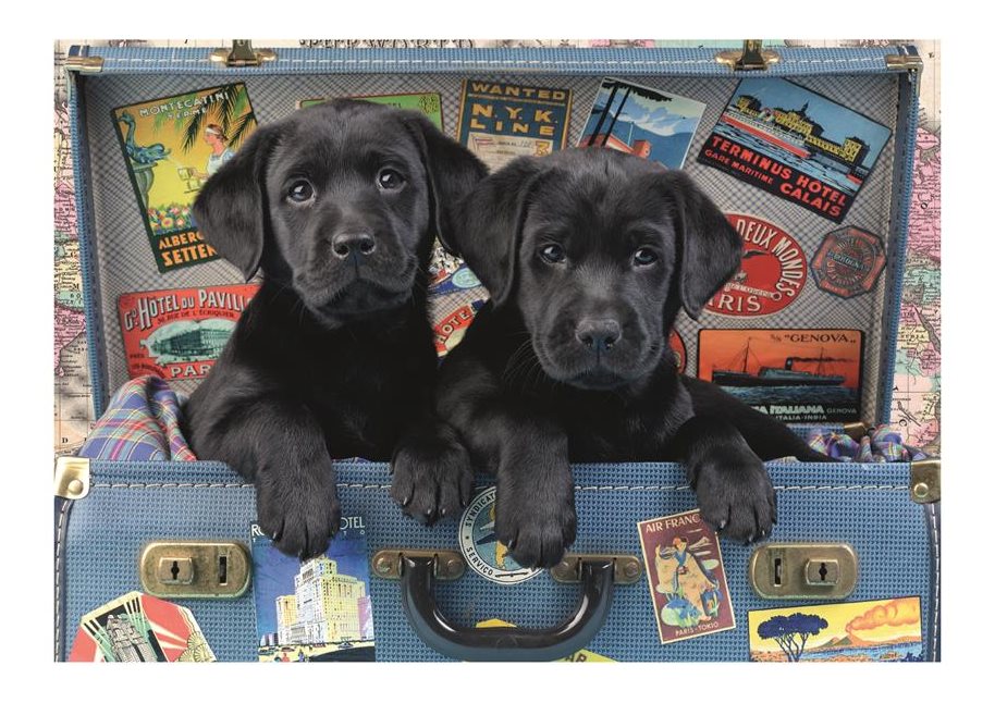 Puzzle, které pobaví celou rodinu. 500 dílků ze kterých si poskládáte roztomilá štěňátka v kufru.