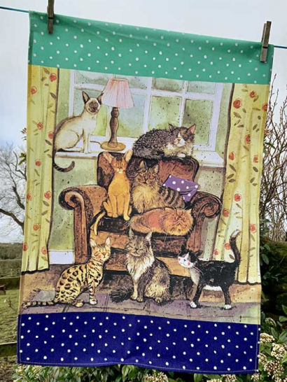 Utěrka ze 100% bavlny, lze ji použít i jako dekoraci nebo malý ručník. Motiv kočky , autorkou je anglická malířka Alex Clark,velikost 45*65 cm, značka Alex Clark Art.