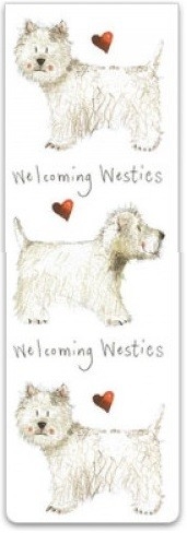 Magnetická záložka do knihy, motiv Westíků, autorkou je anglická malířka Alex Clark.