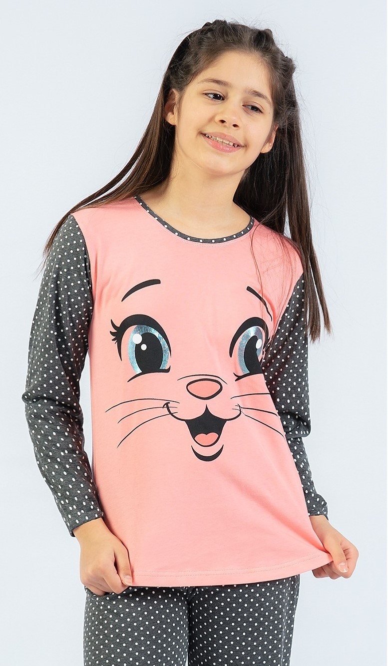 Dětské pyžamo dlouhé lososové, Kočka 3-4 let