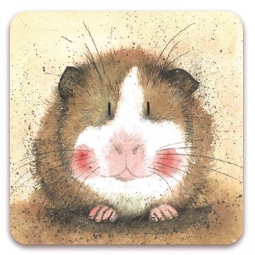 Magnetka s povrchem z tvrzené syntetické pryskyřice. Motiv morčátka Gilberta, autorkou je anglická malířka Alex Clark, značka Alex Clark Art.