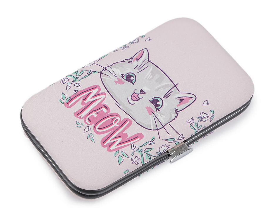 Manikúra v pouzdře s motivem kočky, která potěší milovnice koček. Je praktická, pohodlně se vejde do kabelky, je vhodná i na cestování.
