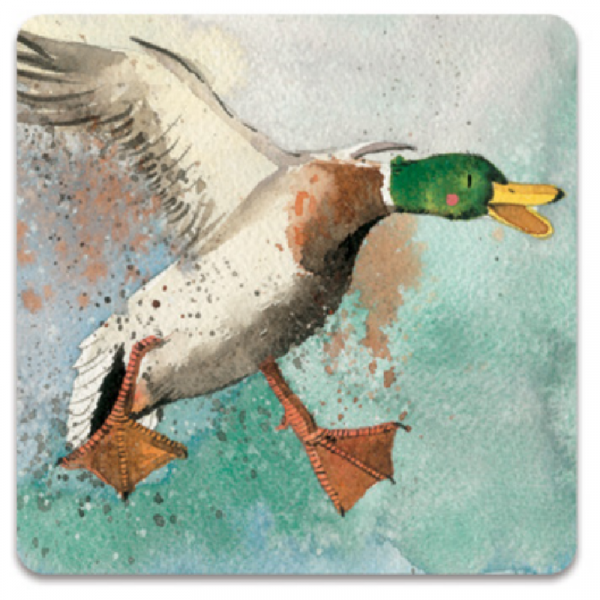 Korková podložka pod hrnek nebo skleničku s motivem Nouzové přistání - Crash landing, autorkou je anglická malířka Alex Clark.