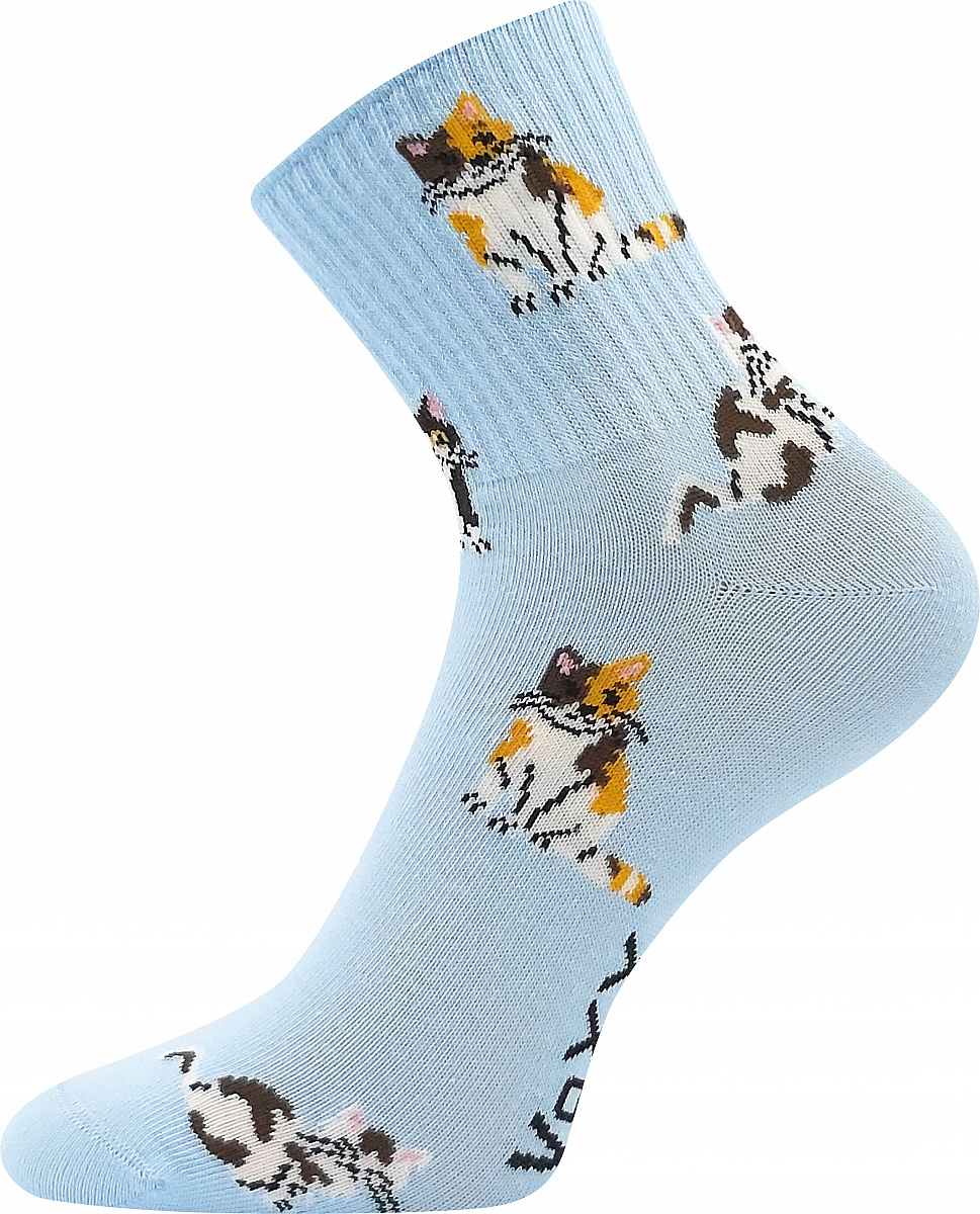 Moderní, veselé ponožky s kočkami. Ponožky jsou vhodné pro každodenní použití, volnočasové aktivity. Mají řetízkovou špici, jsou extra prodyšné, mají vysokou schpnost pojmout vlhkost.