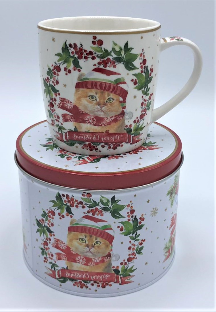 Porcelánový hrnek s dózou Vánoční kočka II, 350 ml