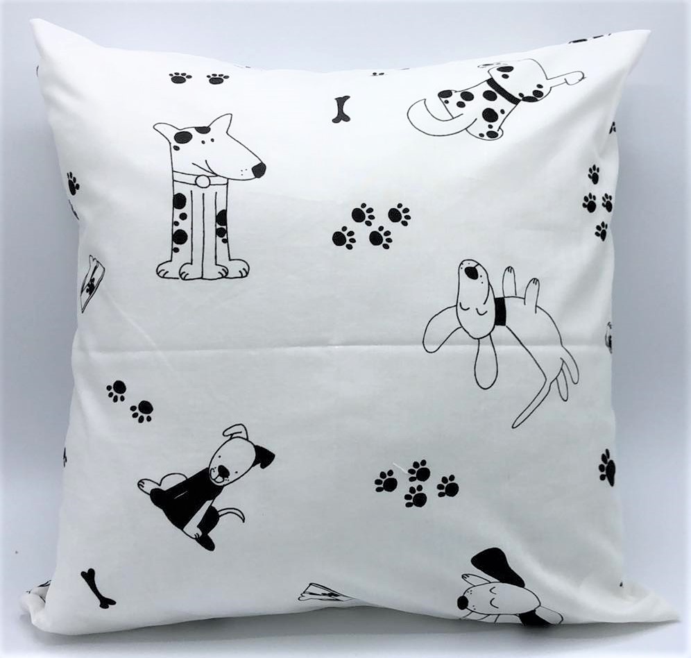 Povlak na polštář s motivem různých pejsků, zapínání na zip. Na každém povlaku jsou pejsci trochu jinak poskládaní, je šito z metráže.