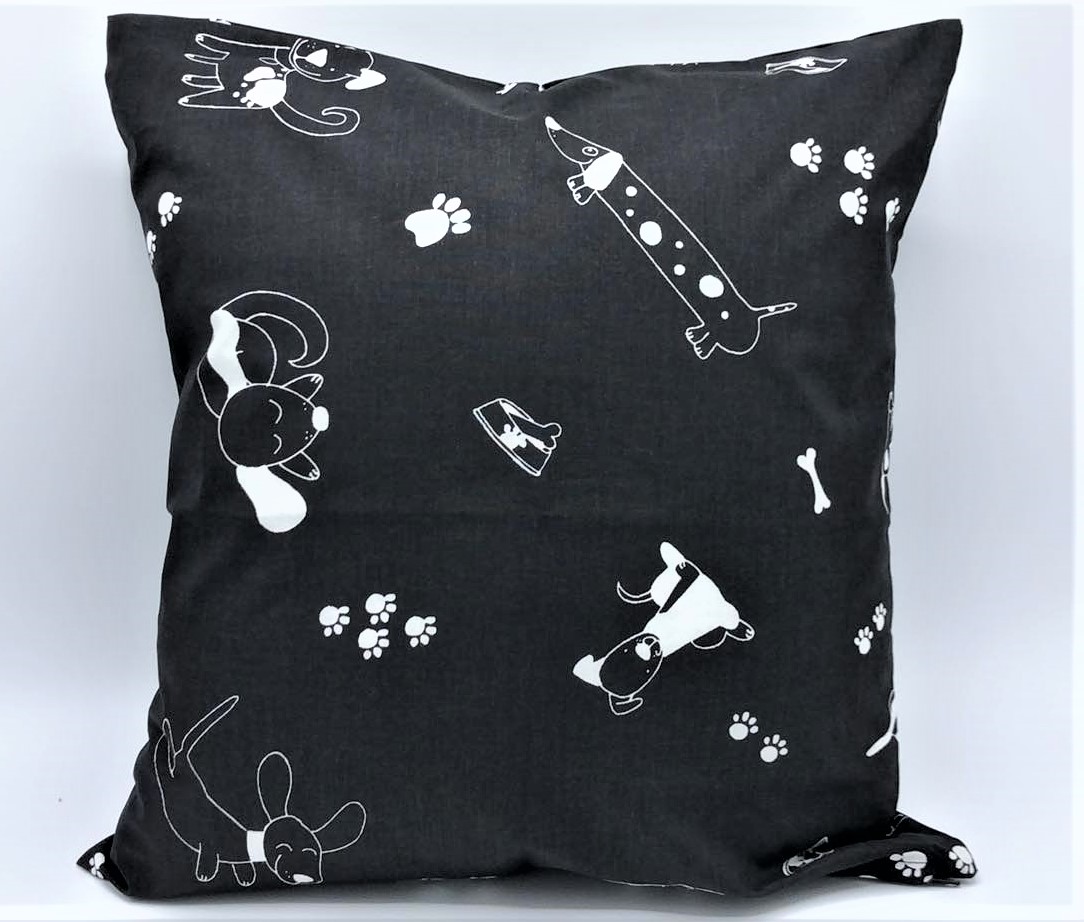 Povlak na polštář černý, Hraví pejsci 40 x 40 cmskladem 3 ks69 Kč/ ks