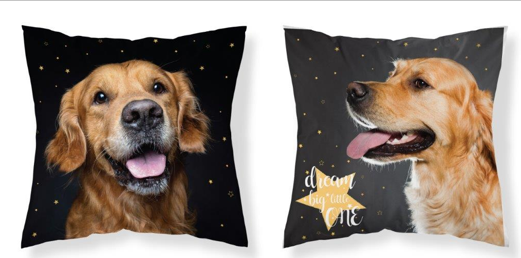 Povlak s oboustranným motivem pejska a hvězd. K povlaku si můžete zakoupit výplňkový polštářek.