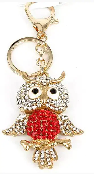 - Přívěsek na kabelku, klíčenka Sova s červenými kamínky II