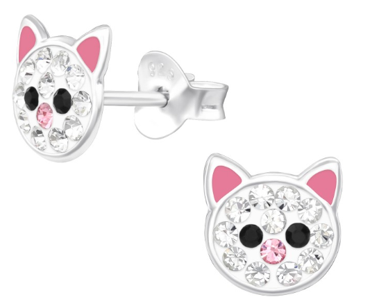 - Stříbrné puzetové náušnice Kočka Mína s krystalky v