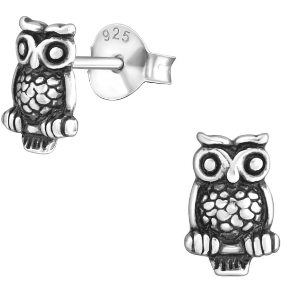 Stříbrné náušnice ve tvaru sovičky.
