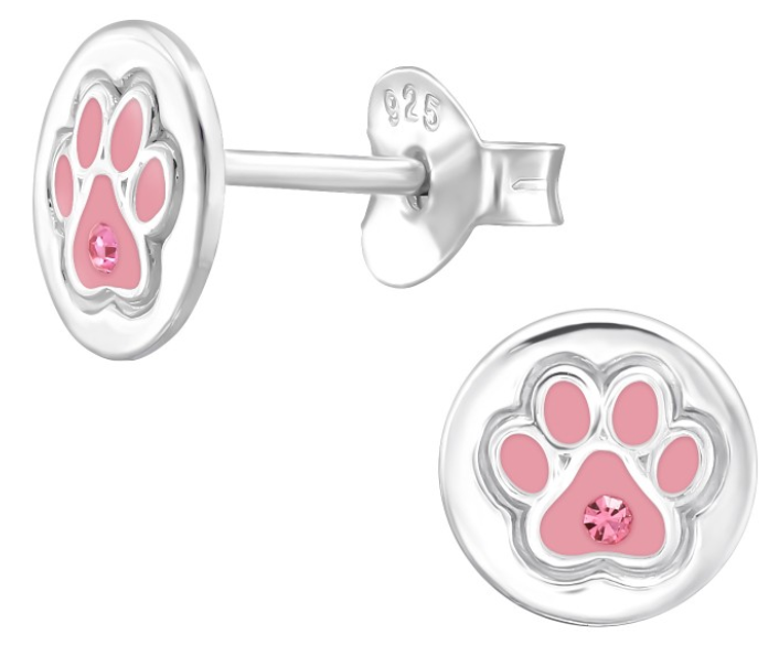 Stříbrné puzetové náušnice Tlapka s kamínkem.