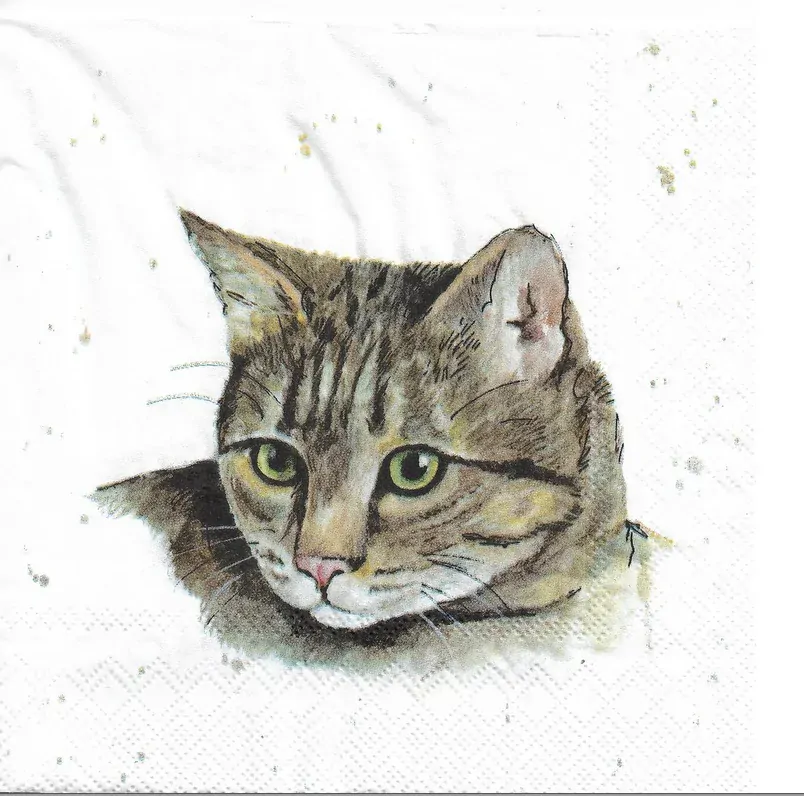 Ubrousky s motivem kočky. Bělené bez chlóru, barvy na vodní bázi.