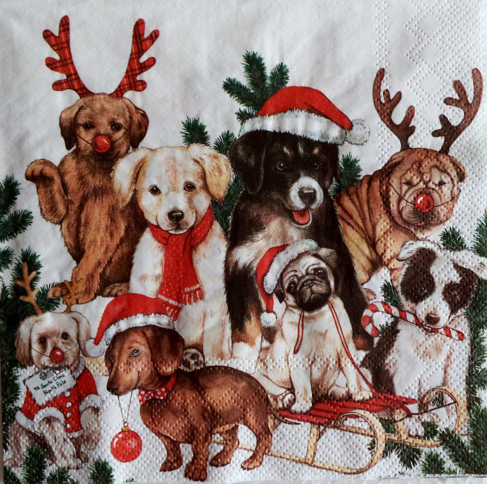 Ubrousky Pejsci o Vánocích I, 33 x 33 cmskladem 3 ks74 Kč/ ks