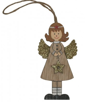 Dřevěná závěsná dekorace andílka.